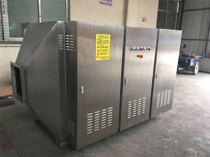 UV光解設備是利用特制的高能高臭氧UV紫外線光束照射廢氣,裂解工業廢氣如:氨、三甲胺、硫化氫、甲硫氫、甲硫醇、甲硫醚、乙酸丁酯、乙酸乙酯、二甲二硫、二硫化碳和苯乙烯,硫化物H2S、VOC類,苯、甲苯、二甲苯的分子鏈結構,使有機或無機高分子惡臭化合物分子鏈,在高能紫外線光束照射下,降解轉變成低分子化合物,如CO2、H2O等。利用高能高臭氧UV紫外線光束分解空氣中的氧分子產生游離氧,即活性氧,因游離氧所攜正負電子不平衡所以需與氧分子結合,進而產生臭氧。  UV+O2→O-+O*(活性氧)O+O2→O3(臭氧),眾所周知臭氧對有機物具有的氧化作用,對工業廢氣及其它刺激性異味有立竿見影的清除效果。工業廢氣利用排風設備輸入到本凈化設備后,凈化設備運用高能UV紫外線光束及臭氧對工業廢氣進行協同分解氧化反應,使工業廢氣物質其降解轉化成低分子化合物、水和二氧化碳,再通過排風管道排出室外。利用高能UV光束裂解工業廢氣中細菌的分子鍵,破壞細菌的核酸(DNA),再通過臭氧進行氧化反應,達到凈化及殺滅細菌的目的.從凈化空氣效率考慮,我們選擇了-C波段紫外線和臭氧發結合電暈電流較高化裝置采用脈沖電暈放吸附技術相結合的原理對有害氣體進行消除,其中-C波段紫外線主要用來去除硫化氫、氨、苯、甲苯、二甲苯、甲醛、乙酸乙酯、乙烷、丙酮、尿烷、樹脂、等氣體的分解和裂變,是有機物變為無機化合物。  凈化裝置由初濾單元、-C波段紫外線裝置,降解收集,臭氧發生器及過濾單元等設備和部件組成。