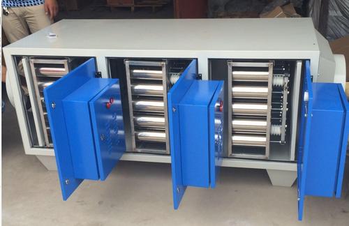 等離子凈化設(shè)備內(nèi)部裝有獨(dú)特的碰吸單元,截留去除廢氣中的顆粒物質(zhì),廢氣收集系統(tǒng)收集的多元素氣體經(jīng)過等離子活性氧凈化裝置,在高壓等離子電場的作用下,電離初始態(tài)氧將其中的廢氣離子進(jìn)行電離荷電凈化,帶電的微小離子(塵埃粒子)被吸附單元所收集并流入和沉積到氣體處理裝置的儲塵箱內(nèi),氣體內(nèi)的有害氣體被電場內(nèi)所產(chǎn)生的臭氧所殺菌,并去除了異味,有害氣體被除掉,達(dá)到廢氣處理的目的。